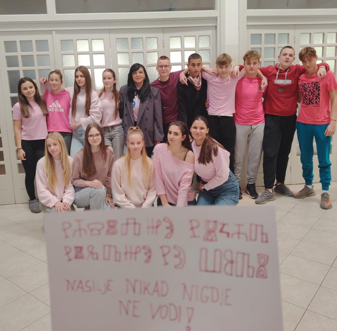 U znak podrške borbi protiv vršnjačkog nasilja, učenici i učitelji došli su u školu odjeveni u ružičaste majice. Školski hodnici toga su dana bili ispunjeni ružičastom bojom koja simbolizira solidarnost, prihvaćanje i zajedništvo.